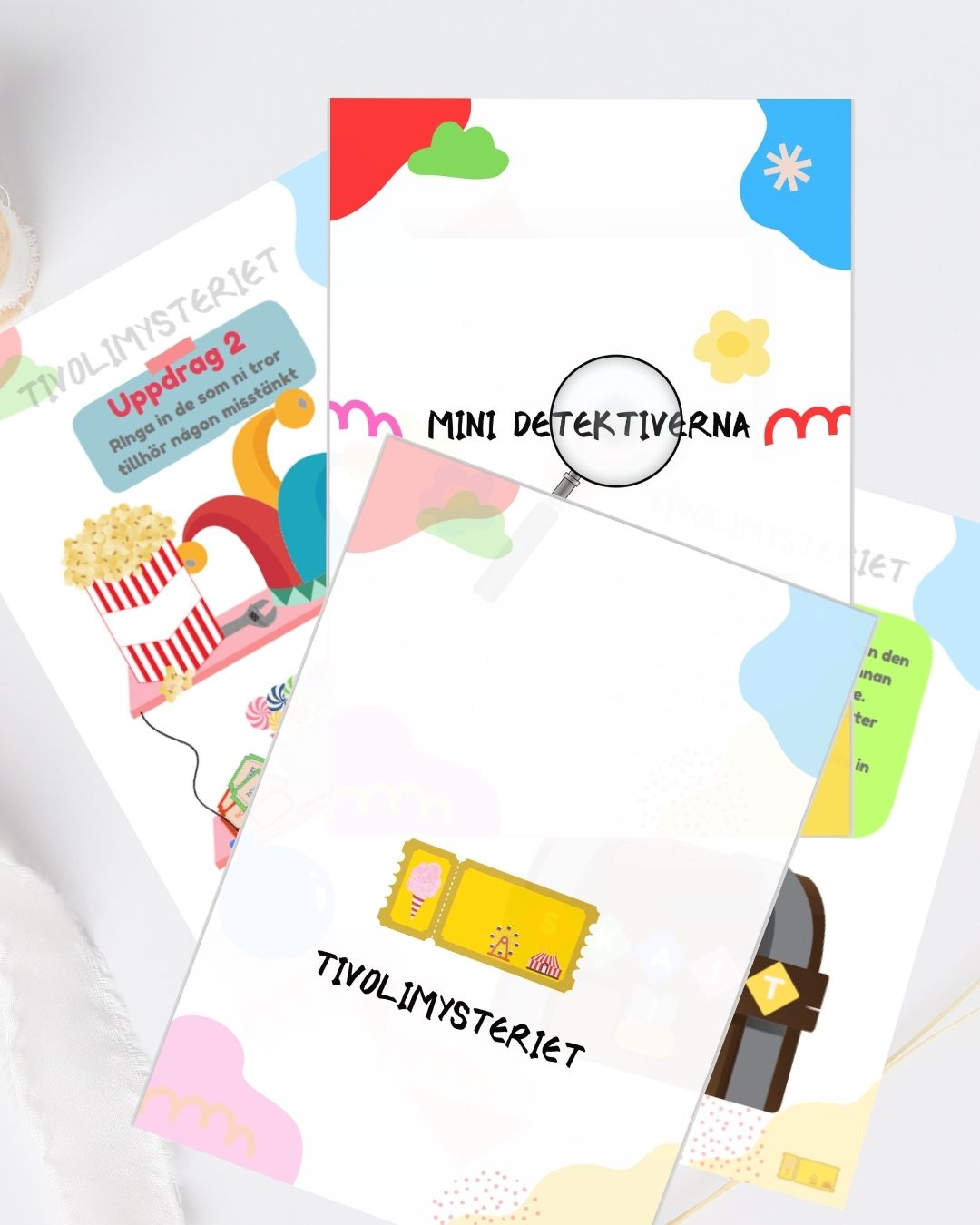 Tivolit ska öppna men den gyllene biljetten är borta. Barnen blir detektiver och undersöker karuseller, kiosker och ballongstånd. Med knasiga misstänkta och roliga uppdrag gäller det att tänka smart och samarbeta.